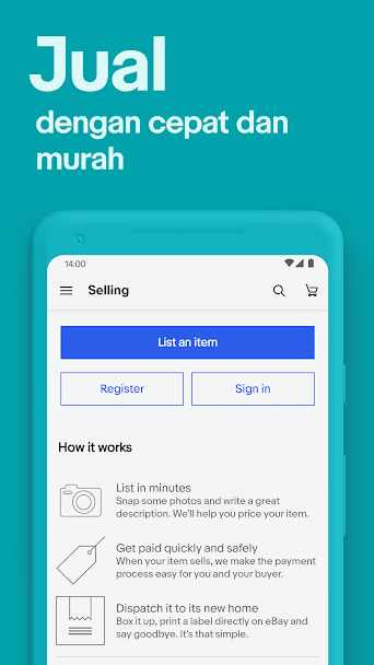 Untuk menjadi anggota eBay, kamu juga tidak perlu membayar apapun, jadi aplikasi ini gratis dan bisa kamu gunakan dengan bebas.